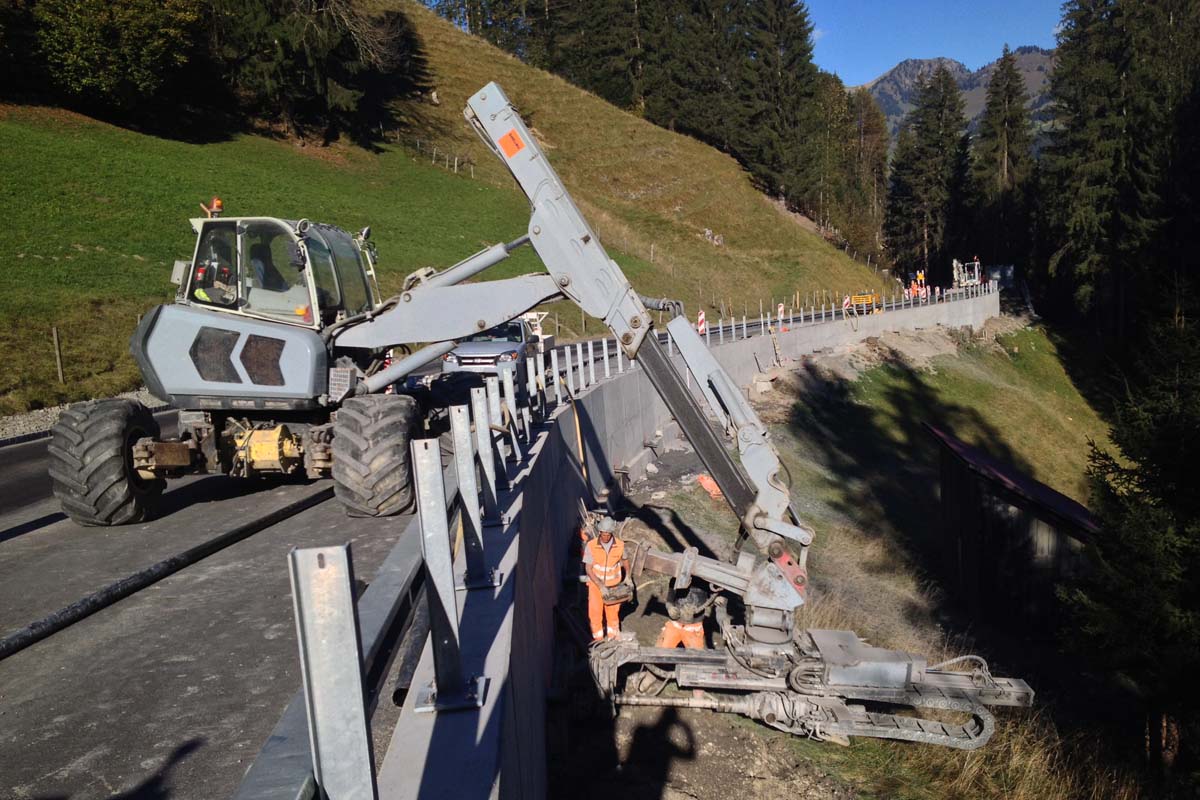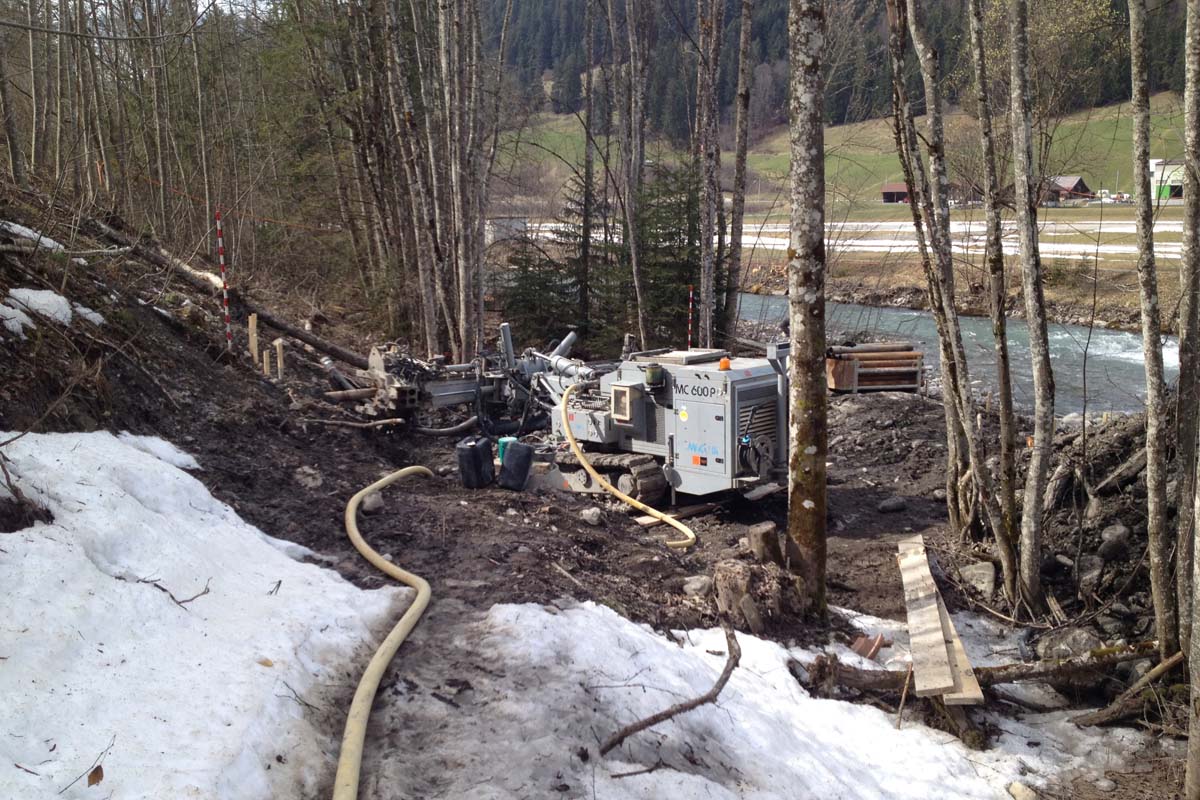 Hangwasser hat auf bestehende oder neue Bauwerke grossen Einfluss. Damit die Einwirkung aus dem resultierenden Strömungs- oder Staudruck entsprechend reduziert werden kann, besteht die Möglichkeit mit Drainagebohrungen die Wasserverhältnisse im anstehenden Boden günstig zu beeinflussen. Durch den gezielten Einbau von Drainagerohren kann das Hangwasser entsprechend gezielt abgeleitet werden. Diese Massnahme kommt sowohl bei temporären Baugrubensicherungen, als auch bei permanenten Stützbauwerken zum Einsatz. Bei letzteren müssen die Drainageleitungen kontrollierbar und spülbar sein, damit die langfristige Gebrauchstauglichkeit durch regelmässige Wartungen garantiert ist.