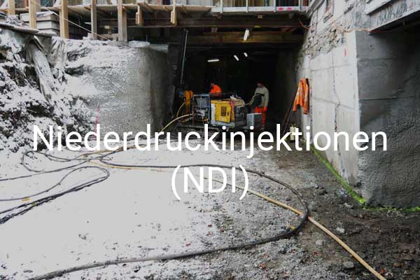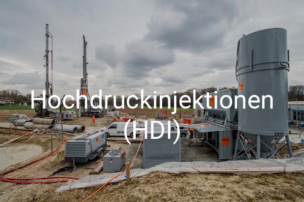 Beim Düsenstrahlverfahren wird der anstehende Boden zur Verbesserung der geotechnischen Eigenschaften mit einem Bindemittel vermischt. Abgestimmt auf die jeweilige Geologie werden dabei der Injektionsdruck und das Bohrverfahren angepasst. Die Ghelma AG Spezialtiefbau greift dabei auf zwei Verfahren zurück. Beim HDI-Verfahren wird das Bindemittel unter Drücken bis 550 bar beim Ziehen des Bohrgestänges eingebracht. Beim NDI-Verfahren wird das Bindemittel während des Bohrens direkt unter Drücken bis 200 bar in den Boden eingebracht. Die Systeme werden je nach Geologie und Zweck des Verpresskörpers eingesetzt.