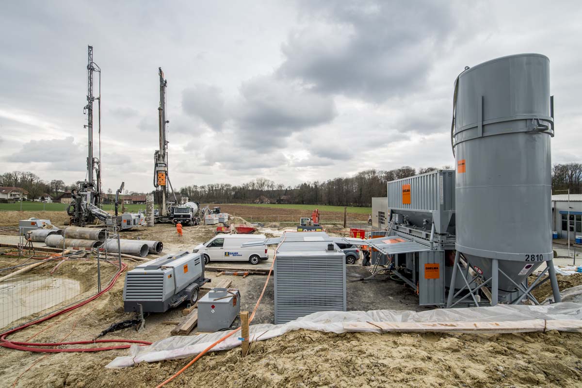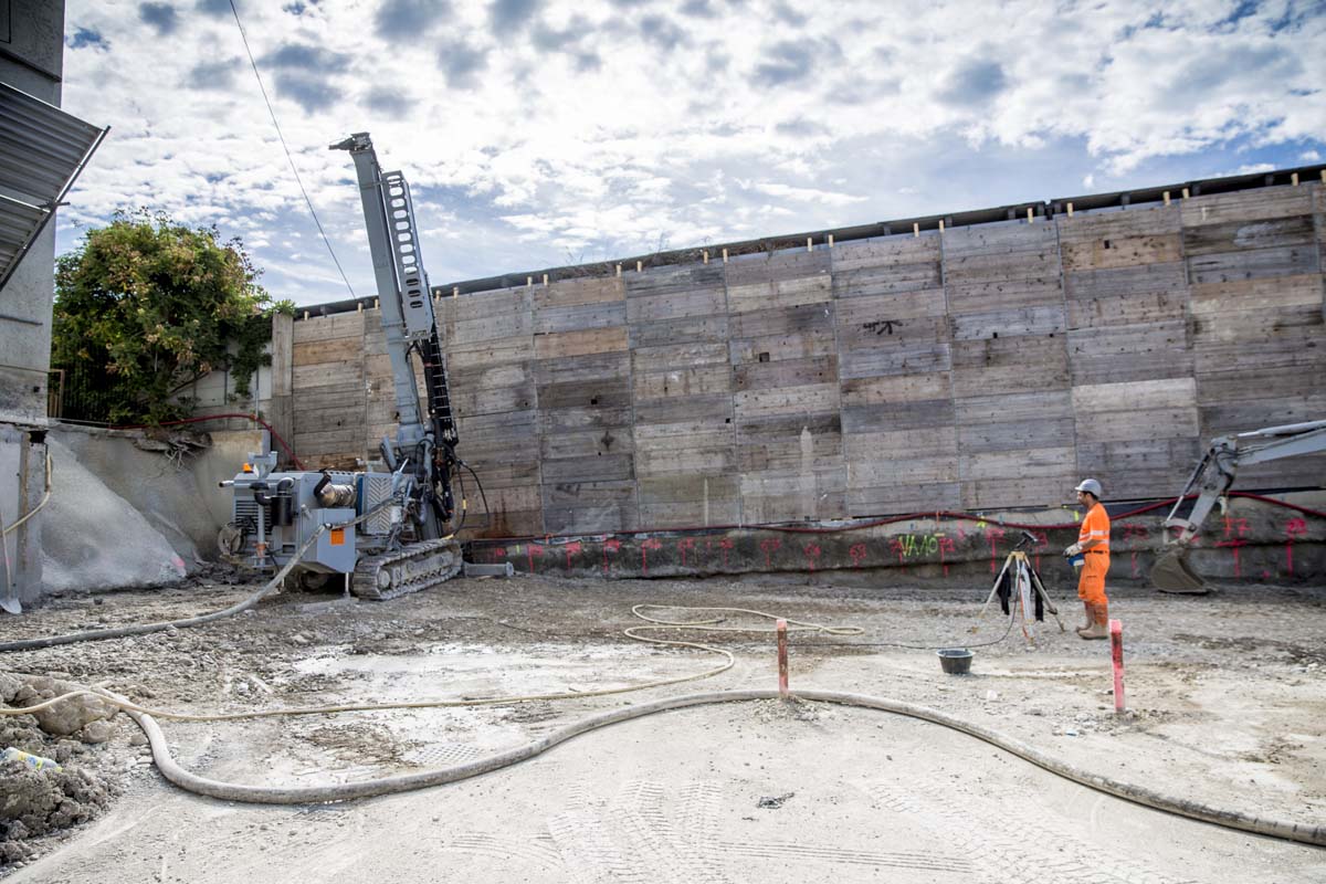 Beim Einsatz von Hochdruckinjektionen (auch Jetting) wird der anstehende Boden mit Zementsuspension vermischt. Dabei kommt eine Injektionsanlage mit einer entsprechenden Leistungsfähigkeit zum Einsatz. Unter Drücken von bis zu 550 bar wird Injektionsgut bei gleichzeitig drehendem Zurückziehen des Bohrgestänges eingebracht. Dabei schneidet der Düsenstrahl das Korngerüst auf und vermischt dieses mit Zement. Es entsteht eine Zementsäule, welche ihre zweckbestimmte Funktion übernimmt. Dies kann die Funktion als Unterfangungskörper, Dichtsole, Dichtwand oder Fundationselement sein.