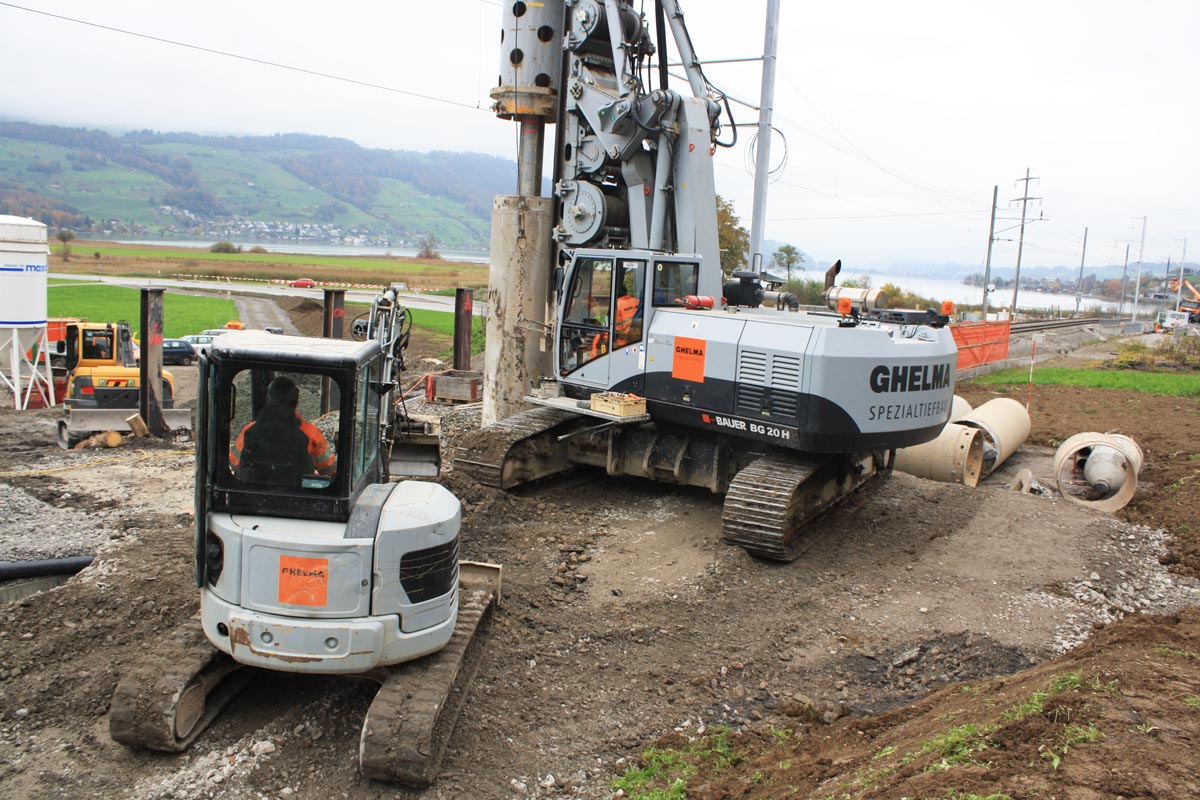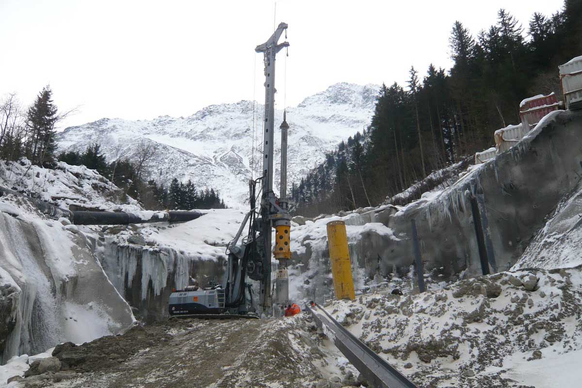Als Hochwasserschutzmassnahmen werden in Flussläufen Geschiebesammler und weitere Verbaumassnahmen realisiert. Damit diese Bauwerke ihren Zweck erfüllen, müssen diese Teils im Untergrund verankert und fundiert werden. Die Ghelma AG Spezialtiefbau verfügt über entsprechende Gerätschaften und das notwendige Know-How um solche Verankerungs- und Fundationsarbeiten auch in exponierten Gerinnen effizient auszuführen.