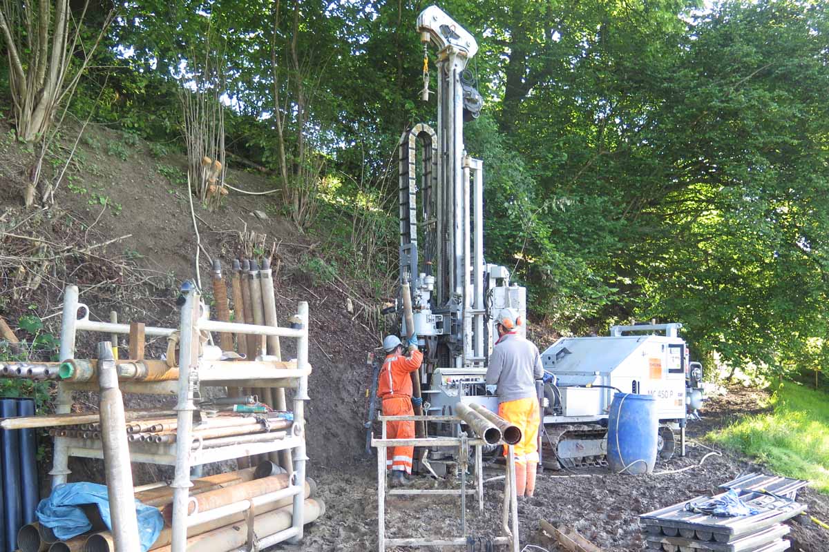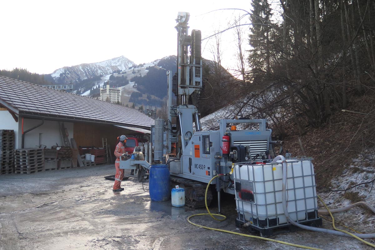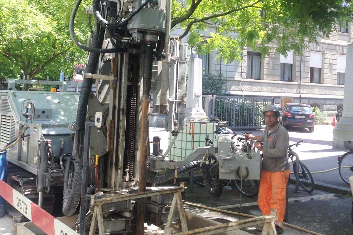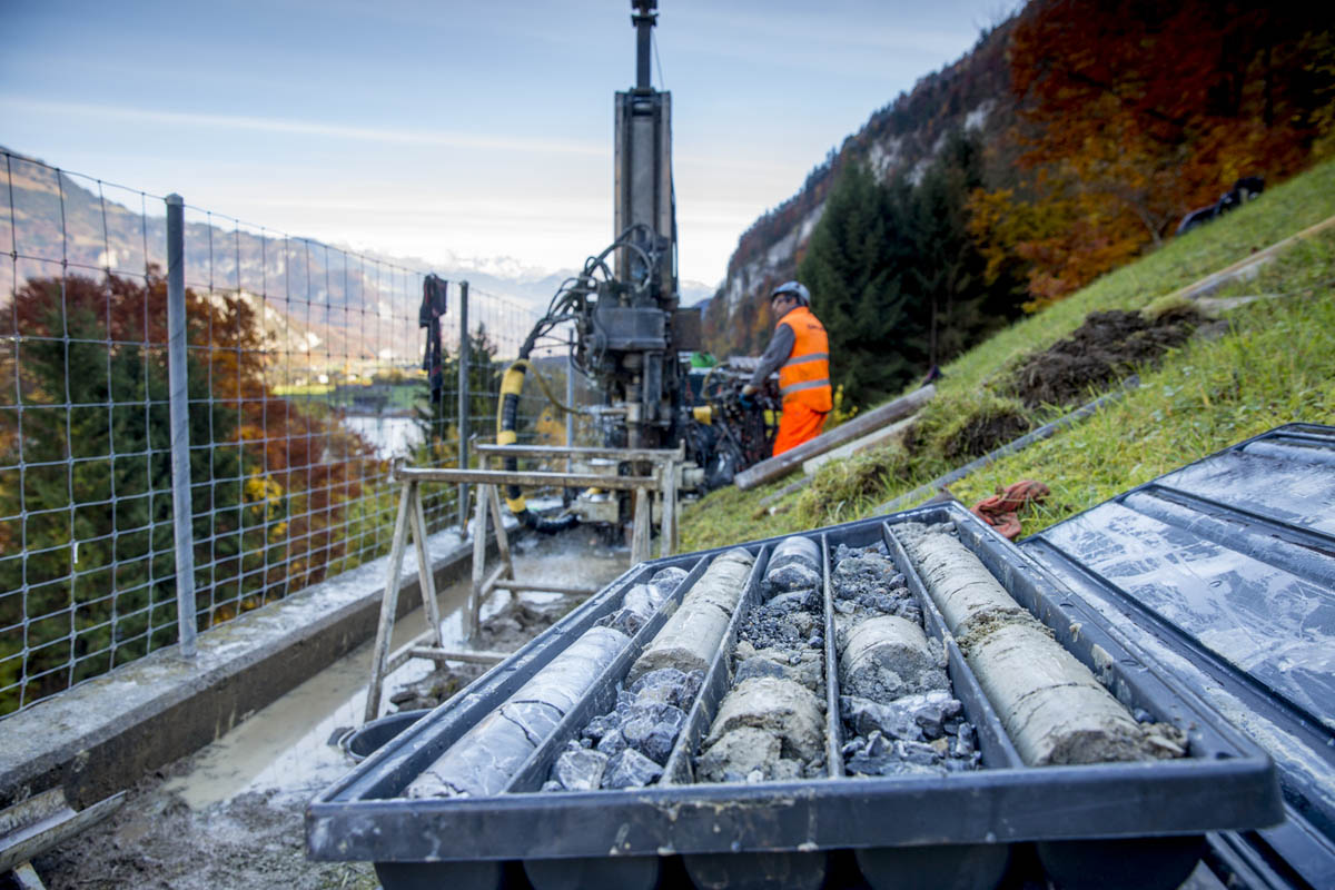 Präzise geologische Gutachten sind die Grundlage zur erfolgreichen Projektierung von geotechnischen Bauwerken. Um einen Aufschluss über die Baugrundbeschaffenheit zu bekommen, ist die Sondierbohrung die aussagekräftigste Erkundungsmethode. So kann der Boden im Projektareal punktuell untersucht und mittels SPT-Versuchen (Standard Penetration Test) auf dessen Lagerungsdichte untersucht werden. Die bei den Bohrungen entnommenen Bohrkerne werden entsprechend sorgfältig in Kisten gelagert und dem zuständigen Geologen zur Erstellung des geologischen Gutachtens übergeben. Die Sondierbohrung eignet sich für die Erkundung von Lockergestein und Fels.