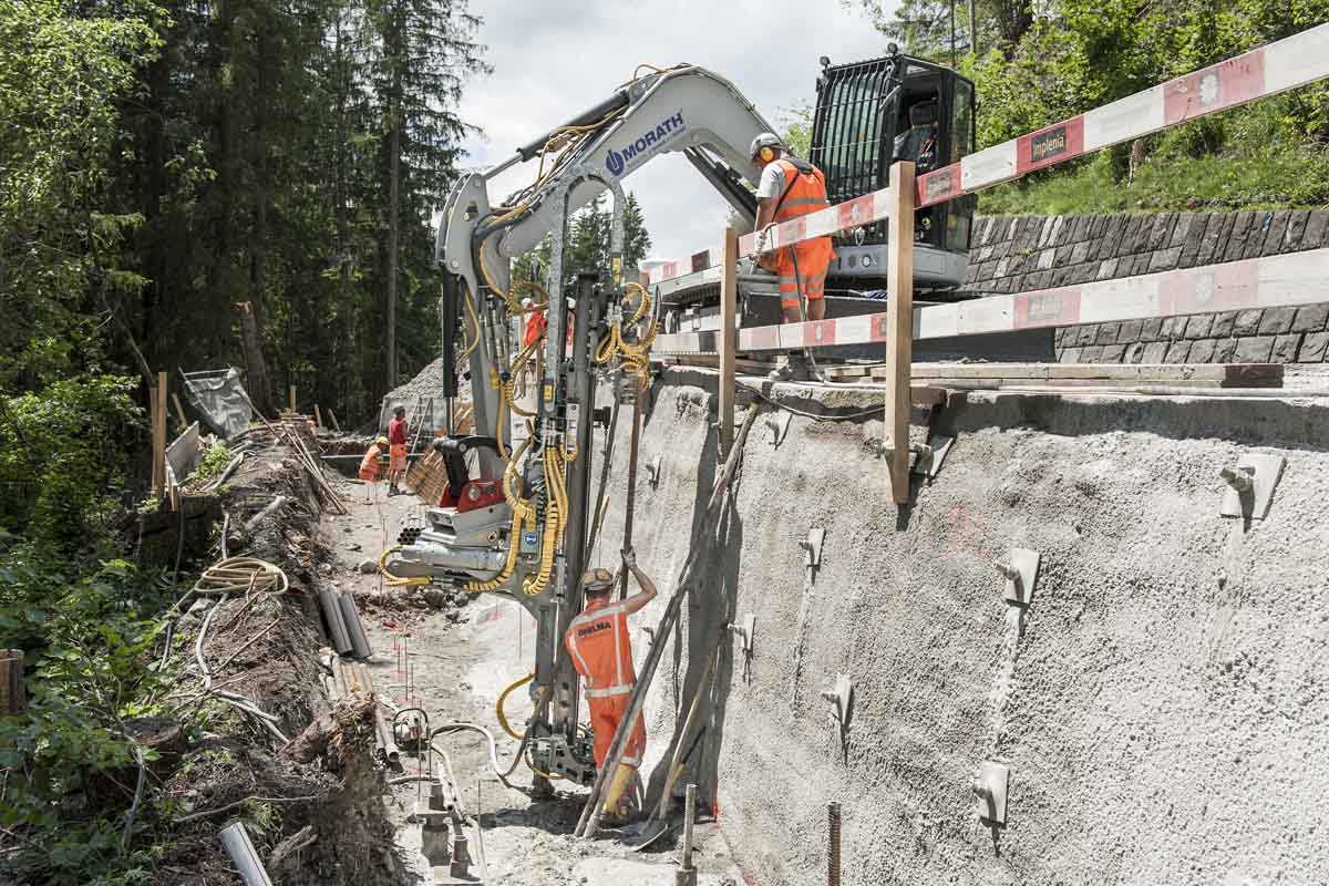 Die Ghelma AG Spezialtiefbau ist führende Anbieterin von Selbstbohrpfahlsystemen in der Schweiz. Der Niederdruckjettingpfahl wird direkt mit Zementmörtel, unter Drücken von bis zu 250 Bar, in den anstehenden Boden eingebohrt. Durch den drehend-injizierenden Arbeitsvorgang wird eine unregelmässige Oberfläche des Verpresskörpers erzeugt. Die gute Verzahnung des Pfahlschaftes aktiviert eine sehr hohe Mantelreibung, über welche die Kräfte in den Boden abgeleitet werden. Die hauseigene Forschungs- & Entwicklungsabteilung hat dieses System weiterentwickelt. So wurden die Injektionsdüsen angepasst um die Effizienz bei der Pfahlherstellung und die Reichweite des Injektionsguts zu verbessern. Die innovativen Verfahren und Systeme werden durch zahlreiche Preise und Forschungsarbeiten unterstützt. Zudem darf die Ghelma AG Spezialtiefbau auf Referenzen wie die Innosuisse und den Berner Energiepreis verweisen. Für das Gesamtsystem (Bohrkrone und Düsen) wurde am 30. April 2020 ein Patent erteilt. Dieses ist im öffentlichen Patentregister eingetragen.