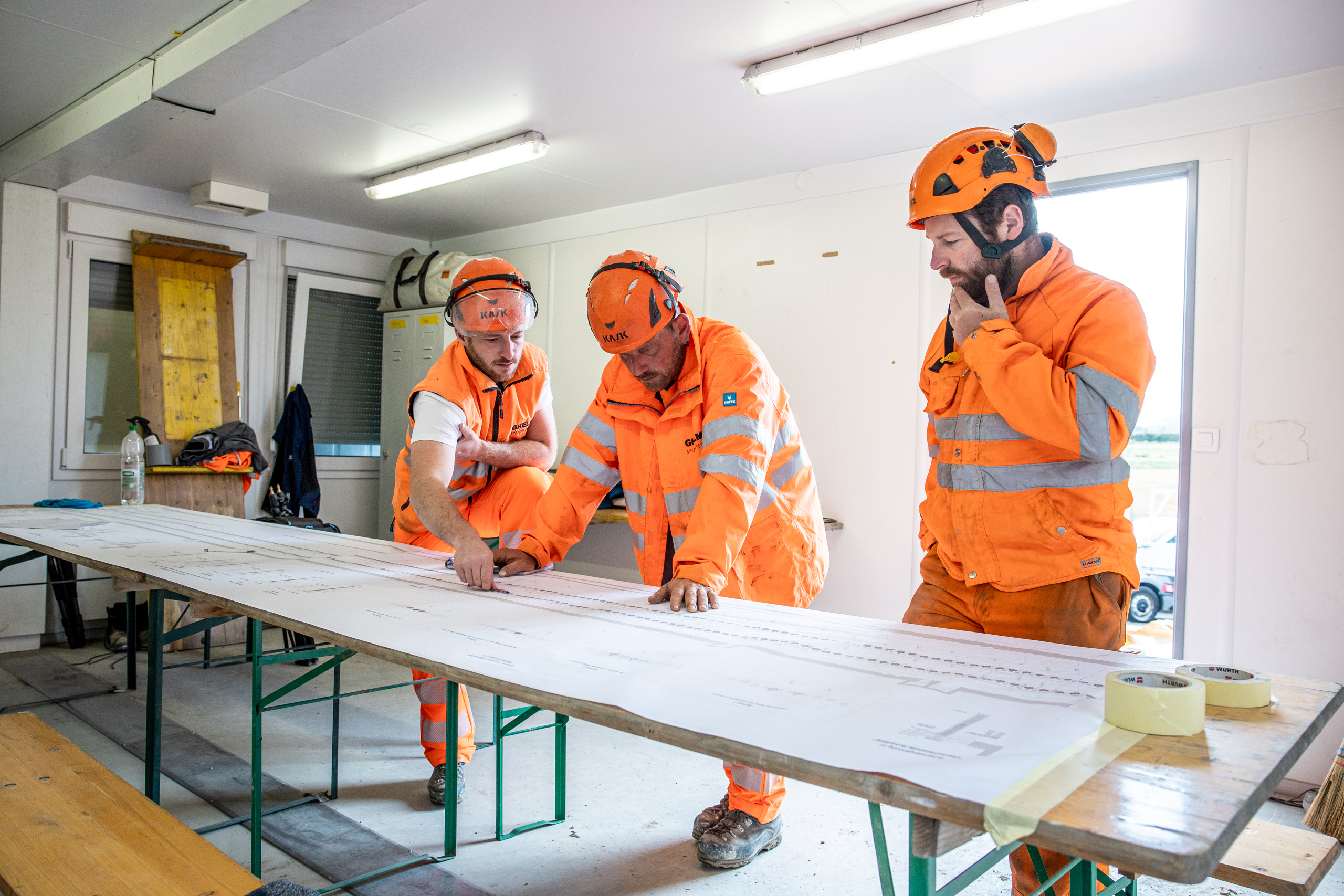 Die Geschichte beginnt mit dem Projekt Gubrist, für das rund 1’600 Grossbohrpfähle mit einer Länge von sechs Metern und einem Durchmesser von 600 mm gefordert waren. Kelly-Pfähle zu bohren bei nur knapp sechs Metern Raumhöhe war die grosse Herausforderung beim Projekt. Björn Hofer, Leiter Technische Administration, erinnert sich noch genau an die Akquisitionsphase: «Der Projektverfasser hat etwas ausgeschrieben, was in der Schweiz noch nie jemand ausgeführt hat. Kein existierendes Drehbohrgerät in der Schweiz erfüllte die Anforderungen. Uns war klar, dass wir das Projekt aus Effizienzgründen nicht mit herkömmlichen Maschinen, sondern mit Kelly-Geräten realisieren wollten. Wir waren durch die wirtschaftlichen Rahmenbedingungen gezwungen, ein effizientes Verfahren zu entwickeln», sagt er rückblickend. Das Ziel des Projektverfassers: Im Voreinschnitt ein Werkleitungsgraben drei Meter unter dem Tunnel zu bauen. Hierzu ist eine überschnittene Bohrpfahlwand als Bauhilfsmassnahmen unterhalb der ersten und zweiten Röhre notwendig.