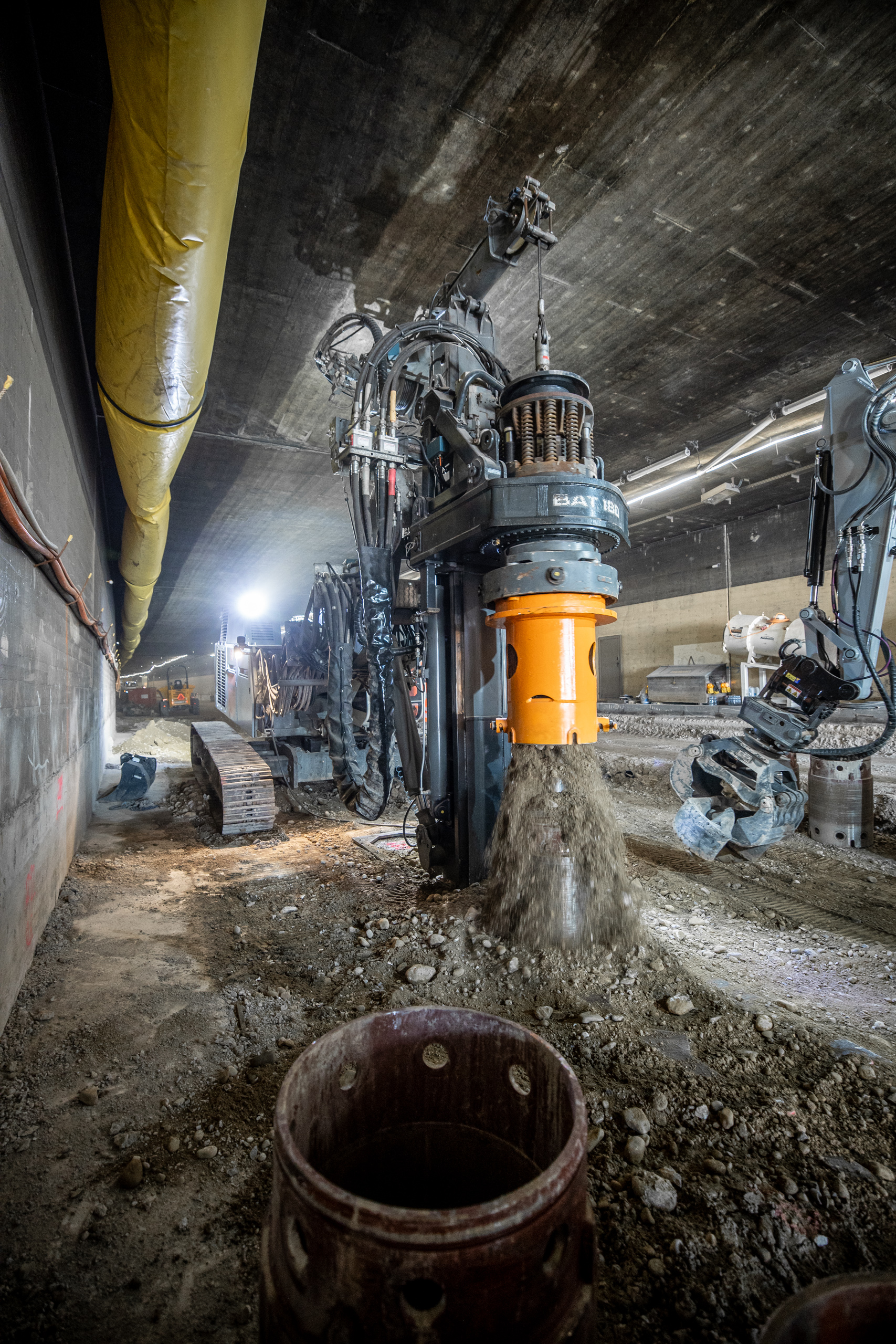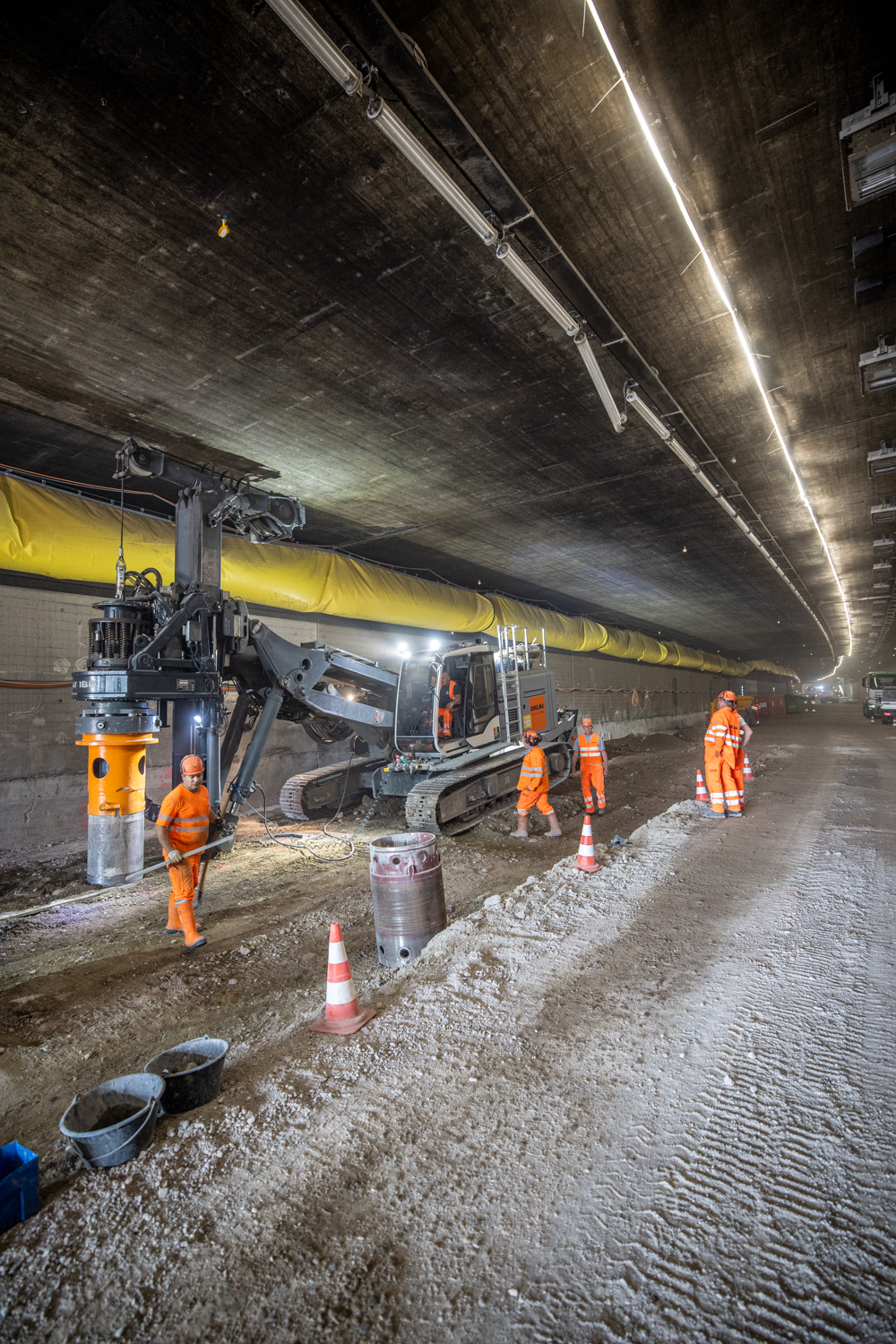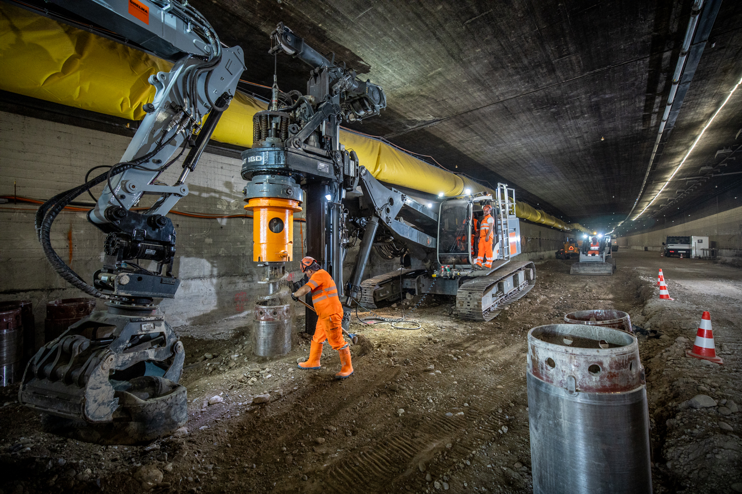 Die Feuertaufe fand in der zweiten Röhre des Gubristtunnels statt. Die Ausführung des Projektes startete am 24. Juli 2023. Das LB16-Gerät wird im Projekt Gubrist ausschliesslich zum Bohren eingesetzt, um die Stillstandzeiten zu minimieren und die Bohrleistung zu maximieren. Die Leistung ist beeindruckend - jeden Tag werden im Schnitt acht bis zehn Pfähle gebohrt. Über einen Zeitraum von fünf Monaten werden rund 800 Bohrpfähle mit einer Länge von jeweils sechs Metern gebohrt. Zudem werden im Jahr 2025 in der ersten Röhre nochmals ca. 800 Pfähle ausgeführt. Das Gubrist-Projektes zeigt auf, dass die eigens entwickelte Maschine zukünftig in der Lage sein wird, Kellypfähle in einer beschränkten Raumhöhe zu bohren. Christian Ghelma zieht Bilanz: «Unsere Idee, ein Bohrgerät zu entwickeln, das Kelly-Bohrpfähle mit inem Durchmesser von 620 mm und sechs Meter Länge in einer Raumhöhe von 5,80 m herstellen kann, wurde erfolgreich umgesetzt. Diese Innovation eröffnet Ingenieuren in verschiedenen Branchen, insbesondere bei Projekten mit besonderen lichten Höhenbeschränkungen, neue Möglichkeiten. Die teamübergreifende Zusammenarbeit war entscheidend für unseren Erfolg, und wir sind stolz darauf, ein einzigartiges Gerät entwickelt zu haben.»