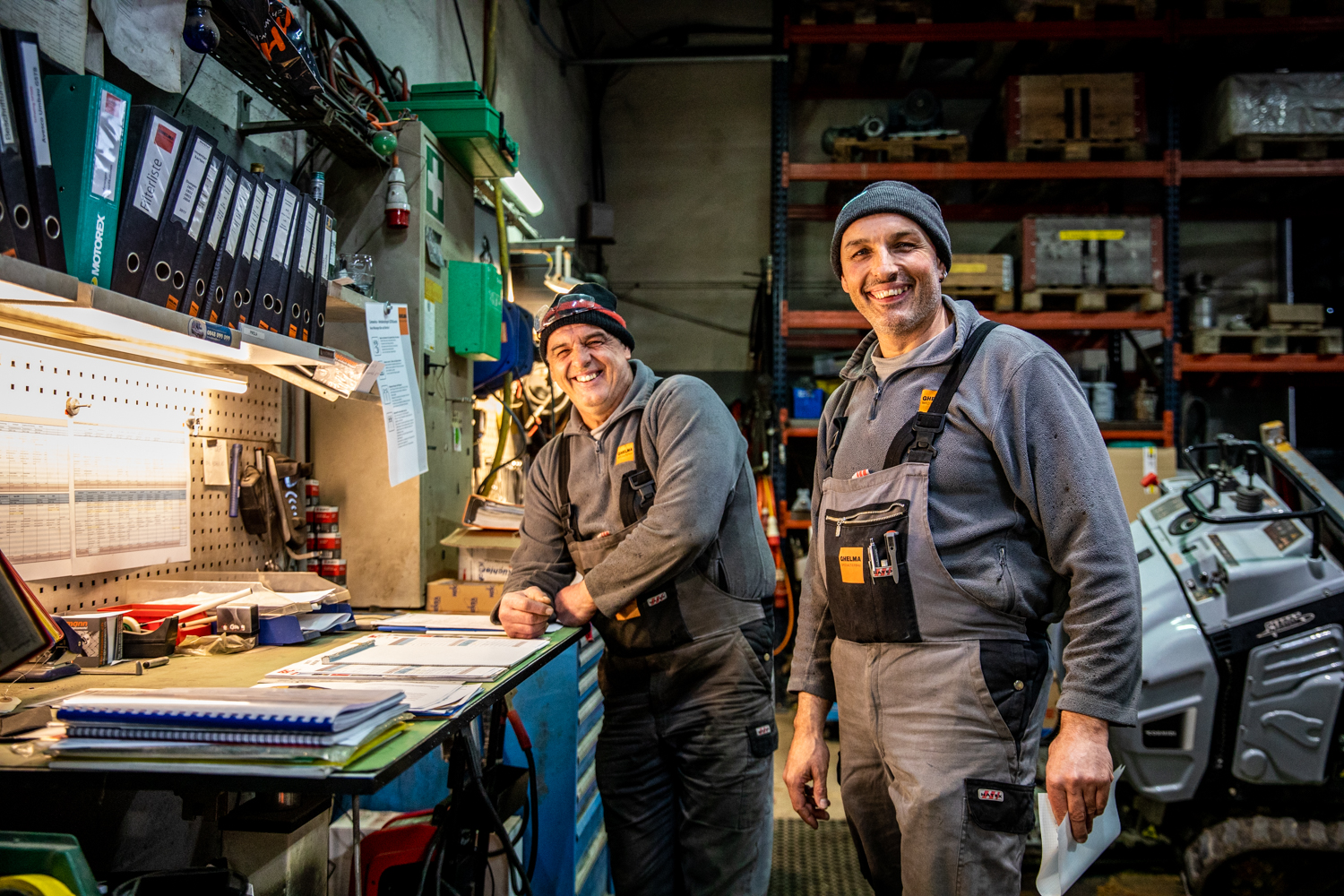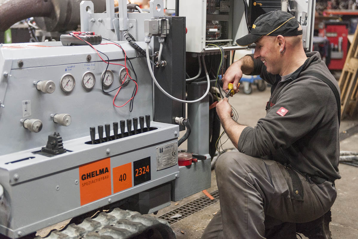 Die Abteilung Mechanik beinhaltet sämtliche Service-, Reparatur- und Unterhaltsarbeiten an Maschinen und Geräten. Zudem werden hier in enger Zusammenarbeit mit der Forschungs- & Entwicklungsabteilung Spezialgeräte und Sonderanfertigungen entwickelt und montiert. Mit vier vollausgerüsteten Werkstattbussen sind alle Arbeiten zudem auch auf der Baustelle just in time möglich.
