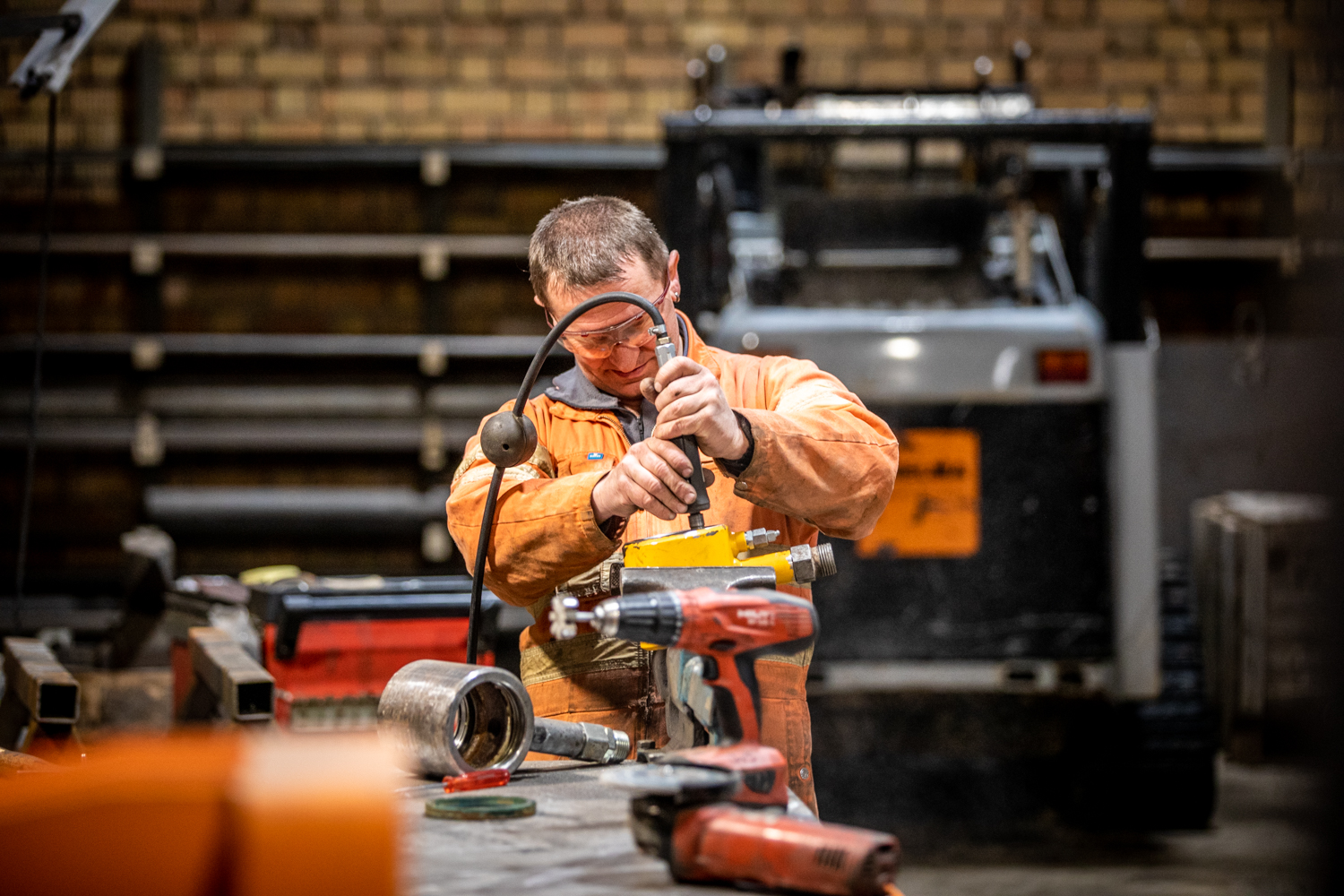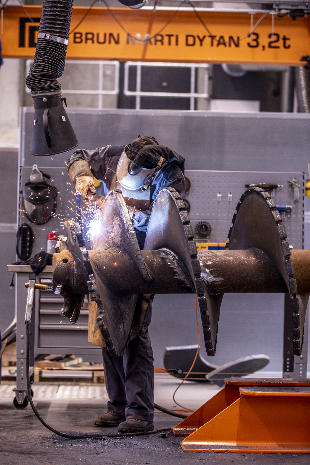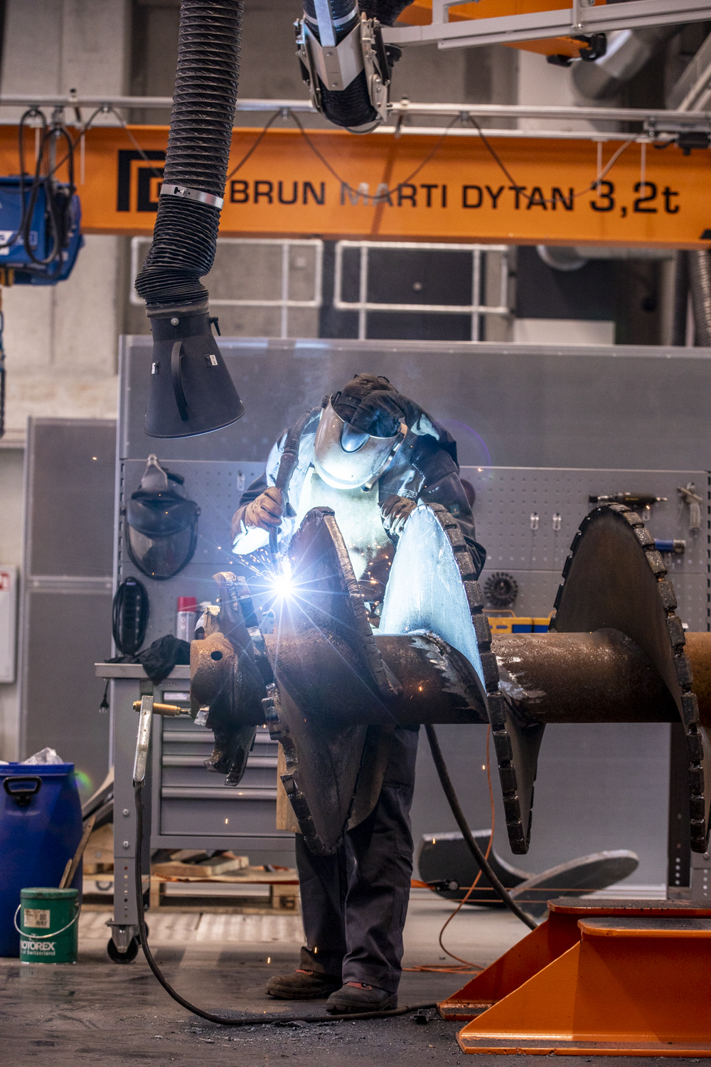 Die Hauptkompetenzen der Schlosserei liegen im Aufarbeiten von Grossbohrwerkzeugen sowie im Herstellen und Anpassen von Spriessen, Longarinen und Ankerköpfen. Diverse Spezial- und Kleinteile werden zeitnahe erstellt und auf der Baustelle montiert. Konstruktionen und Reparaturen für Maschinen und Geräte runden das breite Einsatzspektrum der Schlosserei ab.